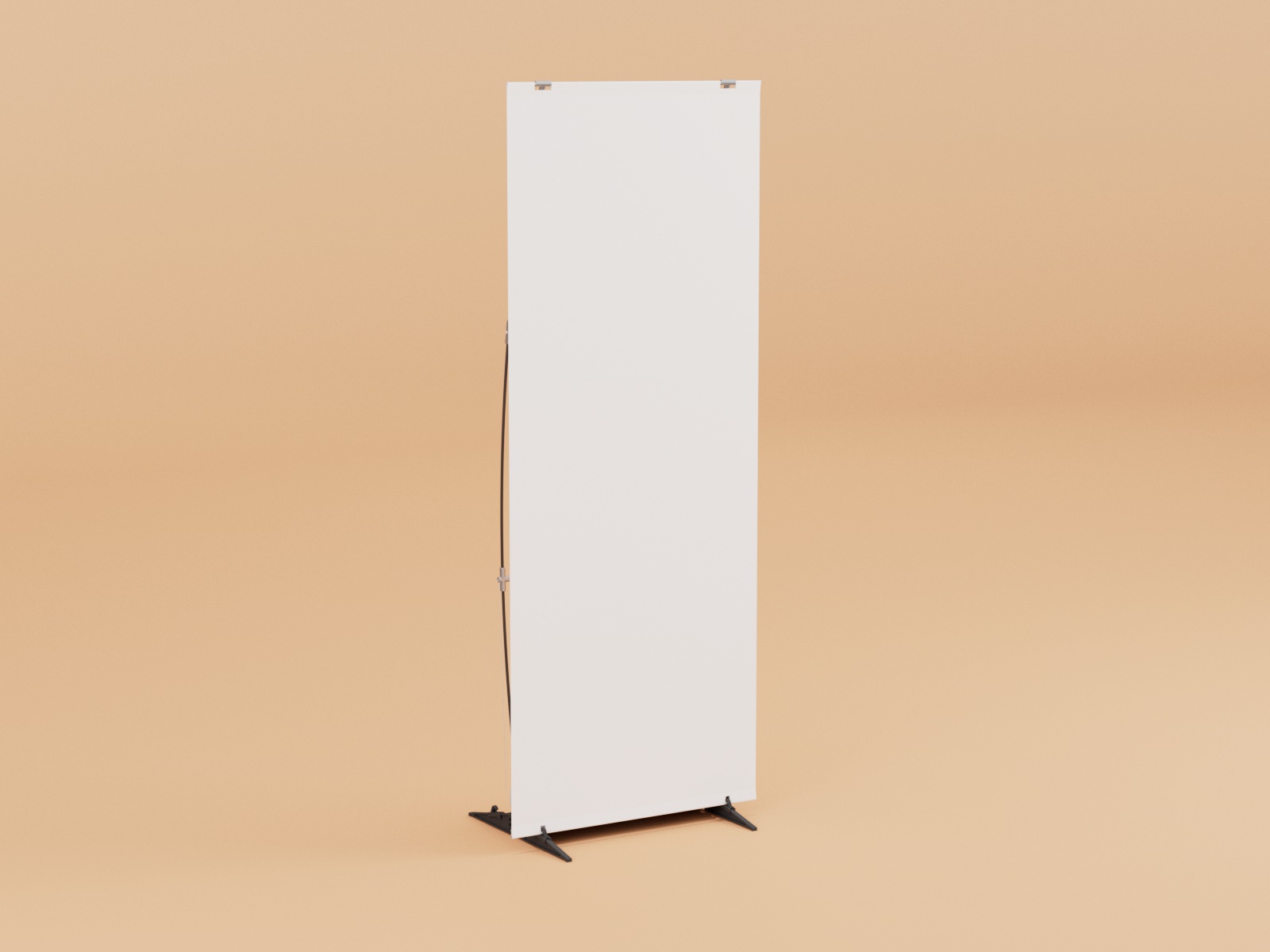 Die selbst-arretierenden Fußteile werden aufgeklappt. Die Struktur aus steckbaren Glasfaserstäben und Aluminiumverbindern wird zusammengesteckt. Die Stahlseile werden in den Haken eingehängt und arretiert. Das Paneel einhängen, die zwei Stützprofile auf den Fußteil legen und den Wassersack darüber legen – fertig ist das Display.